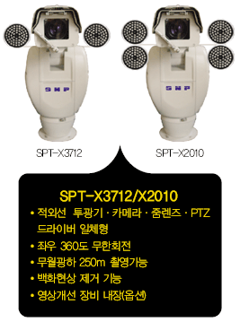IR PTZ Æ÷Áö¼Å´× Ä«¸Þ¶ó´Â ¡®Àû¿Ü¼±Åõ±¤±â, Ä«¸Þ¶ó, ÁÜ ·»Áî, PTZµå¶óÀ̹ö, ÇÏ¿ì¡, ¿ÍÀÌÆÛ¡¯°¡ ÀÏüÇüÀÎ Á¦Ç°ÀÌ´Ù. Á¿ì 360µµ ¹«ÇÑȸÀü¿¡ ȸÀü¼Óµµ 100µµ(ÃÊ´ç)ÀÌ¸ç »óÇÏ +40~-90µµ¿¡ ȸÀü¼Óµµ 80µµ(ÃÊ´ç) Á¦Ç°À¸·Î »ç°¢Áö´ë°¡ ¹ß»ýÇÏÁö ¾ÊÀ¸¸ç, ¿©±â¿¡ ¾ß°£ °¨½Ã°¡ °¡´ÉÇÑ Àû¿Ü¼± Åõ±¤±â Á¦Ç°À» ÀÏÃ¼È ÇÏ¿© ¹«¿ù±¤ »óÅ¿¡¼µµ ÃÖ´ë 250M ¾ß°£ °¡½Ã°Å¸® ÇÇ»çü ÃÔ¿µÀÌ °¡´ÉÇÏ´Ù. ¶ÇÇÑ, ÇÏ¿ì¡ Àü¸é¿¡ ¿ÍÀÌÆÛ(Wiper)°¡ ÀåÂøµÇ¾î ¿ø°ÝÁö¿¡¼ À̹°Áú Á¦°Å°¡ °¡´ÉÇÏ´Ù.