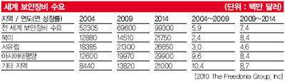 ÀϹÝÀûÀ¸·Î °¡Àå Å« ÀÌÀ±À» ¾òÀ» ¼ö ÀÖ´Â °÷Àº °³¹ßµµ»ó±¹µéÀÌ ÁýÁߵǾî ÀÖ´Â ¾Æ½Ã¾Æ, µ¿À¯·´, ¾ÆÇÁ¸®Ä«, Áßµ¿Áö¿ªÀÌ´Ù. ÀÌ Áö¿ªµéÀº º¸¾È½ÃÀåÀÌ »ó´ëÀûÀ¸·Î ´ú ¹ßÀüµÈ »óÅ¿¡ ÀÖ´Ù. À̵é Áö¿ª¿¡¼ Á¦Ç° ¼ö¿ä´Â Àü¹ÝÀûÀ¸·Î °¼¼¸¦ º¸ÀÌ´Â °æÁ¦»óȲ, »õ·Î¿î ºñÁî´Ï½ºÀÇ Çü¼º, ¿Ü±¹ÀÎ ÅõÀÚȰµ¿, µµ½ÃÈ ÁýÁßÇö»ó, Áß»êÃþ°ú »ó·ùÃþ Àα¸ÀÇ Áõ°¡, ¹üÁËÇàÀ§¿¡ ´ëÇÑ °æ°¢½É °íÁ¶ µîÀ¸·Î ÀÎÇØ ´õ¿í ´Ã¾î³¯ °ÍÀ¸·Î Àü¸ÁÇß´Ù. Áö³ 2009³â¿¡ ¹°¸®Àû º¸¾È Á¦Ç°Àº Àüü º¸¾ÈÀåºñ ¼ö¿äÀÇ 60% ÀÌ»óÀ» Â÷ÁöÇߴµ¥, ÀÚ¹°¼è µî ÃâÀÔÅëÁ¦ Á¦Ç°°ú ´Ù¸¥ ±â°èÀû º¸¾ÈÀåÄ¡ÀÇ ÆÇ¸Å ¶ÇÇÑ Á¡Â÷ ´Ã¾î³¯ °ÍÀ¸·Î ¿¹ÃøÇß´Ù. ÀÌ´Â À§¿¡¼ ¿°ÅÇÑ °³¹ßµµ»ó±¹µé¿¡¼ ¶Ñ·ÇÇÏ°Ô ³ªÅ¸³ª´Â °æ±â È£Á¶¿Í ¾ÆÁ÷ ½ÃÀ强¼÷ ´Ü°è¿¡ À̸£Áö ¾ÊÀº »óȲÀÌ ¸Â¹°·Á º¸¾ÈÀåºñ ¼ö¿ä´Â Æø¹ßÀûÀ¸·Î ´Ã¾î³¯ °ÍÀ¸·Î º¸´Âµ¥ µû¸¥ °ÍÀÌ´Ù. »ó¾÷ ¹× »ê¾÷Àû º¸¾ÈÀåºñ ½ÃÀåÀº ÇöÀç °¡Àå Å« ½ÃÀåÀ¸·Î 2009³â¿¡´Â Àüü ÆÇ¸ÅÀÇ ¾à 65%¸¦ Â÷ÁöÇß´Ù. Ŭ¸®ºê·£µå¿¡ À§Ä¡ÇÑ »ê¾÷½ÃÀå ¿¬±¸È¸»çÀÎ The Freedonia Group »çÀÇ »õ·Î¿î ¿¬±¸ ÀÚ·áÀÎ <¼¼°è º¸¾ÈÀåºñ>¿¡ ÀÌ·¯ÇÑ »ê¾÷µ¿ÇâÀÌ ÀÚ¼¼È÷ ºÐ¼®µÇ¾î ÀÖ´Ù.