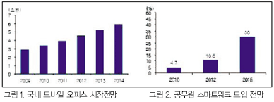 ÀÌÁ¦´Â ½Ã´ëÀÇ È帧ÀÌ ¾ðÁ¦ ¾îµð¼­³ª ½Ã°£ÀÇ ±¸¾Ö¸¦ ¹ÞÁö ¾Ê°í ¾÷¹«°¡ °¡´ÉÇÑ ½º¸¶Æ®¿ÀÇǽº/½º¸¶Æ®¿öÅ©·Î ¿Å°Ü°¡´Â Å« È帧À» ¸·À» ¼ø ¾ø´Ù. ¶ÇÇÑ, Á¤ºÎÁ¤Ã¥¿¡ µû¶ó ¿ÃÇØ ½Ã¹ü ±¸ÃàµÈ 2°³ ½º¸¶Æ®¿öÅ©¼¾ÅͰ¡ ³»³âºÎÅÍ 2015³â±îÁö ±¤¿ª±Ç 48°³, ¹Î°£ÅõÀÚÇü 450°³·Î È®»êµÇ°í, °ø¹«¿ø ½º¸¶Æ®¿öÅ© ºñÀ²ÀÌ 2015³â¿¡´Â 30%±îÁö ´Ã¾î³¯ °ÍÀ¸·Î ¿¹»óµÇ°í ÀÖ´Ù. ÀÚ¼¼ÇÑ Åë°è´Â ¾Æ·¡ ±×¸²À» Âü°íÇϱ⠹ٶõ´Ù.