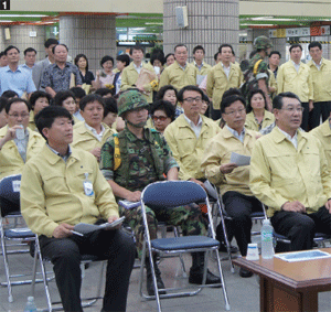 ÃëÀ縦 À§ÇØ µµ°î¿ª¿¡ µµÂøÇßÀ» ¶§ ÀÌ¹Ì ¿ª»ç¿¡´Â ¿ª»ç Á÷¿øµéÀ» ºñ·ÔÇØ ±ºÀΰú °æÂû µî ÈÆ·ÃÂü°¡ÀÚ¿Í °ü°èÀÚ µîÀÌ ÈÆ·ÃÁغñ¸¦ Çϰí ÀÖ¾ú´Ù. ¿ÀÈÄ 2½Ã ÈÆ·Ã ÁøÇà»çÇ× ºê¸®ÇÎÀ» ½ÃÀÛÀ¸·Î °ø½ÄÀûÀÎ ÈÆ·ÃÀÌ ½ÃÀ۵Ǿú´Ù. À̳¯ ÈÆ·ÃÀº À»Áö¿¬½ÀÀÇ ÀÏȯÀ¸·Î ÁöÇÏö¿¡¼ ¹ú¾îÁö´Â Æø¹ß ¹× µ¶°¡½º Å×·¯¿¡ ´ëÇÑ ´ëÀÀ´É·Â°ú À¯°ü±â°üÀÇ ÇùÁ¶Ã¼°è¸¦ ±¸ÃàÇϱâ À§ÇØ ½Ç½ÃµÆ´Ù(»çÁø 1).