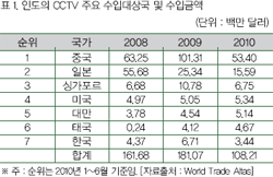 įº¸µð¾Æ °ü¼¼Ã»ÀÇ Åë°è¿¡ µû¸£¸é 2007³â ÀÌÀü¿¡´Â CCTVÀÇ ¼öÀÔÀÌ °ÅÀÇ ¾ø¾úÀ¸³ª 2007³â 26¸¸ 8,552´Þ·¯¸¦ ±â·ÏÇϸç óÀ½À¸·Î CCTV ¼öÀÔÀÌ ÀÌ·ïÁ³°í, À̵ëÇØÀÎ 2008³â 253¸¸1,718´Þ·¯·Î ¼öÀÔ·®ÀÌ ¾à 10¹è Áõ°¡ÇßÀ¸¸ç, 2009³â¿¡´Â ¾à 300¸¸ ´Þ·¯¸¦ ±â·ÏÇϸç Áõ°¡¼¼¸¦ ³ªÅ¸³ª°í ÀÖ´Ù. ÀÌ·¯ÇÑ ¼öÀÔ·®ÀÇ Áõ°¡´Â ºÀÁ¦°øÀå µî °øÀå ¼³¸³ Áõ°¡¿Í ´ë¡¤¼ÒÇü ½´ÆÛ¸¶ÄÏ, È£ÅÚ, À½½ÄÁ¡, ¾ÆÆÄÆ® °Ç¼³ Áõ°¡¿¡¼ ±âÀÎÇÑ °ÍÀ¸·Î º¼ ¼ö ÀÖ´Ù.