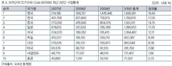 ¿ä¸£´Ü¿¡´Â CCTV Á¦Á¶¾÷ü°¡ ¾ø±â ¶§¹®¿¡ ¼öÃâ°ü·Ã µ¥ÀÌÅÍ´Â Á¸ÀçÇÏÁö ¾ÊÀ¸¸ç, ¼öÀÔÀÇ °æ¿ì¿¡´Â 2009³â ±âÁØÀ¸·Î ¿ä¸£´Ü CCTV ¼öÀÔ¾×ÀÌ 450¸¸ ´Þ·¯¸¦ »óȸÇÏ´Â °ÍÀ¸·Î Á¶»çµÆ´Ù.