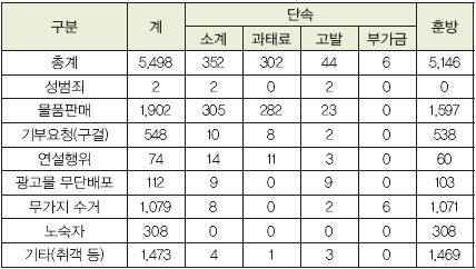 Áö³ 9¿ù 22ÀϺÎÅÍ º»°Ý ÅõÀÔµÈ ÁöÇÏöº¸¾È°üµéÀº ¾à ÇÑ´Þ µ¿¾È ÃÑ 5,498°ÇÀÇ ´Ü¼ÓȰµ¿ ¹ú¿´À¸¸ç, ±× Áß ¹°Ç°ÆÇ¸Å ´Ü¼ÓÀÌ 1,902°ÇÀ¸·Î °¡Àå ¸¹¾Ò°í Ãë°´ µî ¹«Áú¼ ÇàÀ§, ¹«°¡Áö ¼ö°Å µî¿¡ ´ëÇÑ ´Ü¼ÓÀÌ µÚ¸¦ À̾ú´Ù. ÁöÇÏöº¸¾È°üÀº Àüµ¿Â÷¿Í ¿ª»ç¸¦ ¼øÂû ±Ù¹«Çϸç ?¼ºÃßÇà µî ÁöÇÏö ¼º¹üÁË ¿¹¹æ ?°ø°øÁú¼¸¦ ÇØÄ¡´Â ºÒ¾È¿äÀÎ ´Ü¼Ó ?ºÎ»óÀÚ¡¤¾î¸£½Å µî ±³Åë¾àÀÚ µ½±â µî ½Ã¹ÎµéÀÌ ¾ÈÀüÇÏ°Ô ÁöÇÏö ÀÌ¿ëÇÒ ¼ö ÀÖµµ·Ï ȯ°æ Á¶¼º¿¡ Àû±Ø ³ª¼°í ÀÖ´Ù. ¼¿ï½Ã´Â Áö³ ÇÑ ´Þ°£ÀÇ Àû¹ß ÇàÀ§ Áß ¼º¹üÁË 2°Ç, Àâ»óÀÎ ¹°Ç°ÆÇ¸Å 305°Ç, ¿¬¼³ÇàÀ§ 14°Ç µî ÃÑ 352°Ç¿¡ ´ëÇØ °æÂû¿¡ ÀÌøÇϰųª °úÅ·Ḧ ºÎ°úÇßÀ¸¸ç, ¹«°¡Áö ¼ö°Å 1,071°Ç, ±âºÎ¿äû ÇàÀ§ 538°Ç µî ÃÑ 5,146°Ç¿¡ ´ëÇØ¼´Â ÈÆ¹æÁ¶Ä¡ Çß´Ù.