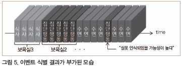 ±×¸² 5´Â °¢ ´ÜÀ§ ¿µ»ó¿¡ À̺¥Æ® ½Äº° °á°ú°¡ ºÎ°¡µÈ ¸ð½ÀÀ» ³ªÅ¸³»°í ÀÖ´Ù. °¢ À̺¥Æ®·ÎºÎÅÍ ¸î ºÐÀÇ ¿µ»óÀ» ÃßÃâÇÔÀ¸·Î½á ´ÙÀÌÁ¦½ºÆ®°¡ ¿Ï¼ºµÇÁö¸¸, ±× ¼±Åà ¹æ¹ýÀº ¾Æ·¡ÀÇ ¨ç~¨ê ±ÔÄ¢¿¡ ÁØÇÑ´Ù.