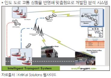 ÃÖ±Ù Àεµ Á¤ºÎ¿Í ¾÷°è´Â »êÇבּ¸ ÇÁ·ÎÁ§Æ®¸¦ ½Ç½ÃÇØ Àεµ ±³Åë ÇöȲ¿¡ ¸ÂÃá °¢Á¾ ITS ½Ã½ºÅÛ °³¹ßÀ» ÁøÇàÇϰí ÀÖÀ¸³ª ¿©ÀüÈ÷ ÇØ¿Ü ¼±Áø±â¼ú°ú °æÇèÀ» ÇÊ¿ä·Î Çϰí ÀÖ´Ù. ÀÌ·¯ÇÑ °¡¿îµ¥ Àεµ µµ½Ã¿Í ÁÖÁ¤ºÎº°·Î ÀÔÂû °ø°í¸¦ ¹ßÇ¥Çϰí ÀÖ¾î ¿ì¸® ±â¾÷¿¡¼´Â ÇÁ·ÎÁ§Æ® ÇöȲÀ» ¿¹ÀÇ ÁÖ½ÃÇÒ Çʿ䰡 ÀÖ´Ù. ÇöÀç Àεµ¿¡¼´Â DMIC(Delhi Mumbai Industrial Corridor) ÇÁ·ÎÁ§Æ®¸¦ À§½ÃÇØ ´ë±Ô¸ð µµ·Î ÀÎÇÁ¶ó »ç¾÷ÀÌ ÁøÇàµÇ°í ÀÖ¾î E-Åç°ÔÀÌÆ®¿Í µµ·Î Á¤º¸ ½Ã½ºÅÛÀÇ µµÀÔ Àü¸ÁÀÌ ¹àÀ» °ÍÀ¸·Î º¸ÀδÙ. 300¸¸ ÀÌ»óÀÇ Àα¸°¡ °ÅÁÖÇÏ´Â µµ½Ã°¡ ÃÑ 8°³·Î µ¨¸®, ¹æ°¥·Î¸£, ¹³¹ÙÀÌÀÇ ITS ÇÁ·ÎÁ§Æ®¿Í À¯»çÇÑ ITS ½Ã½ºÅÛÀÇ µµÀÔÀÌ Áö¼ÓÀûÀ¸·Î ´Ã¾î³¯ °ÍÀ¸·Î Àü¸ÁµÇ°í ÀÖ¾î ¿ì¸® ±â¾÷ÀÇ °ü½ÉÀÌ ÇÊ¿äÇÒ °ÍÀ¸·Î º¸ÀδÙ.