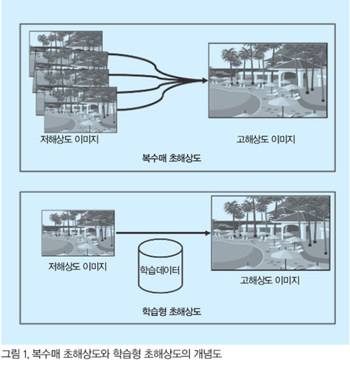 ÃÊÇØ»óµµ ±â¼úÀº ÇØ»óµµ°¡ ³·Àº À̹ÌÁö(ÀúÇØ»óµµ À̹ÌÁö)·ÎºÎÅÍ ¼±¸íÇϰí ÇØ»óµµ°¡ ³ôÀº À̹ÌÁö(°íÇØ»óµµ À̹ÌÁö)¸¦ º¹¿øÇÏ´Â ¹æ¹ýÀ̸ç Ä«¸Þ¶ó·Î ÃÔ¿µµÈ ¿µ»ó µîÀ» °íÁ¤¹ÐÈÇϱâ À§Çؼ ³Î¸® ÀÌ¿ëµÇ°í ÀÖ´Ù. °íÇØ»óµµ À̹ÌÁö¸¦ ¹Ù¸£°Ô º¹¿øÇϱâ À§Çؼ´Â ÀúÇØ»óµµ À̹ÌÁö¿¡¼´Â »ó½ÇµÇ¾î ÀÖ´Â °íÁÖÆÄ ¼ººÐÀ» ¾î¶°ÇÑ ¼ö´ÜÀ¸·Î ÃßÁ¤ÇÒ Çʿ䰡 ÀÖ´Ù. ±× ¼ö´ÜÀº 2Á¾·ù·Î ³ª´ ¼ö ÀÖÀ¸¸ç º¹¼öÀÇ ÀúÇØ»óµµ À̹ÌÁö¸¦ ÀÌ¿ëÇÏ´Â °ÍÀ» º¹¼ö¸Å ÃÊÇØ»óµµ, ÇÇ»çü¿¡ °üÇÑ Á¤º¸¸¦ ¹Ì¸® ÇнÀÇØ µÎ´Â °ÍÀ» ÇнÀÇü ÃÊÇØ»óµµ¶ó°í ºÎ¸¥´Ù(±×¸²1).
