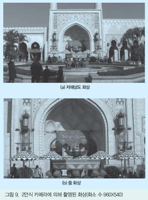 ½ÃÆÇÇÏ´Â 2¾È½Ä ½ºÅ×·¹¿À Ä«¸Þ¶ó·Î¼ ±¤ÇÐ ÁÜÀÌ °¡´ÉÇÑ FUJIFILM»çÀÇ FinePix REAL 3D W3¿¡ ÀÇÇØ ÃÔ¿µµÈ È»ó¿¡ ´ëÇØ Á¦¾È ¹æ¹ýÀ» Àû¿ëÇß´Ù. ¿©±â¿¡¼´Â ±×¸² 8¿¡ ³ªÅ¸³»´Â °Íó·³ ÇÑÂÊ Ä«¸Þ¶ó¿¡¼´Â Ȱ¢ÀÌ ³ÐÀº ÀúÇØ»óµµ È»óÀ» ÃÔ¿µÇÏ°í ´Ù¸¥ ÇÑÂÊÀÇ Ä«¸Þ¶ó¿¡¼´Â ÁÜ È»óÀ» ÃÔ¿µÇÑ´Ù. ÁÜ ¹èÀ²Àº Ä«¸Þ¶ó ¼³Á¤ »ó¿¡¼´Â 2¹è·Î Çϰí(Ä«¸Þ¶ó ±³Á¤¿¡ ÀÇÇØ ½ÇÁ¦ÀÇ ÁÜ ¹èÀ²¿¡´Â ´Ù¼ÒÀÇ Â÷À̰¡ ÀÖÀ½À» ¾Ë°í ÀÖÀ½), ¸ñÀûÀº ÀúÇØ»óµµ È»óÀ» Á¾È¾ 2¹è·Î È®´ëÇÏ´Â °ÍÀÌ´Ù.
