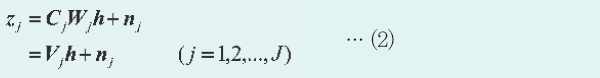 ÁÖº¯¿¡ ¹èÄ¡µÈ Ä«¸Þ¶ó¿¡¼ ÃÔ¿µµÇ´Â ÁÜ È»óÀº Áß¾Ó ½ÃÁ¡ÀÇ ÀÌ»óÀûÀÎ °íÇØ»óµµ È»óÀ» ½ÃÁ¡ À̵¿ÇÑ ÈÄ¿¡ ÁÜ ¹èÀ²¿¡ µû¶ó Àß¶ó³¿À¸·Î½á ¾òÀ» ¼ö ÀÖ´Ù°í °¡Á¤ÇÑ´Ù. j(=1, 2, ...., J)¹øÂ°ÀÇ ÁÜ È»óÀ» N Â÷¿ø º¤ÅÍ zj¿¡ ÀÇÇØ ³ªÅ¸³»¸ç ¸ÕÀú¿Í °øÅëÀÇ Áß¾Ó ½ÃÁ¡ÀÇ °íÇØ»óµµ È»óÀ» M Â÷¿ø º¤ÅÍ h¿¡ ÀÇÇØ ³ªÅ¸³½´Ù. ¶ÇÇÑ, ȼÒÀÇ ½ÃÁ¡ À̵¿ ¿¬»ê¿¡ ´ëÀÀÇÏ´Â M X M Â÷¿ø Çà·ÄÀ» Wj·Î ³ªÅ¸³»°í È»óÀÇ À߶󳻱⠿¬»ê¿¡ ´ëÀÀÇÏ´Â N X M Â÷¿ø Çà·ÄÀ» Cj·Î ÇÑ´Ù. ¶ÇÇÑ, °¡¹ýÀû ÀâÀ½ ¼ººÐÀ» N Â÷¿ø º¤ÅÍ nj·Î ÇÑ´Ù. À̶§ ÁÜ È»óÀÇ °üÃø ¸ðµ¨Àº