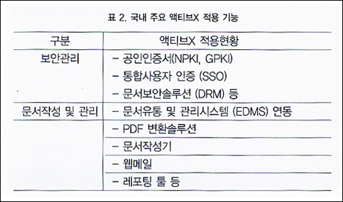 ƯÈ÷ °øÀÎ, ºñ°øÀÎ ÀüÀÚ¼¸íÀÎÁõ¼ÀÇ °ü¸®, ÀüÀÚ¹®¼ À§º¯Á¶ °ü¸®, ¹®¼ÀÛ¼º, ¸®Æ÷ÆÃ(Åë°è), ÆÄÀϰü¸® µî¿¡¼ ÁýÁßÀûÀ¸·Î ¾×ƼºêX¸¦ »ç¿ëÇϰí Àֱ⠶§¹®¿¡ ÀÌ·¯ÇÑ ±â´ÉÀ» Á¦°øÇÏ´Â »çÀÌÆ®´Â ¹®Á¦°¡ ´õ¿í ½É°¢ÇÑ »óȲÀÌ´Ù.