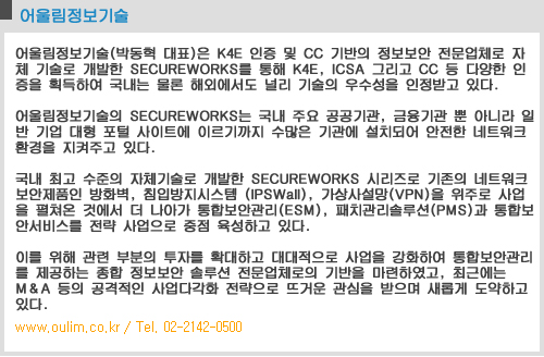 ¾î¿ï¸²Á¤º¸±â¼úÀÇ SECUREWORKS ezWall 200 Á¦Ç°Àº ³×Æ®¿öÅ©¿¡¼ ¹ß»ýÇÏ´Â ¸ðµç À§Çè¿ä¼ÒµéÀ» ¿Ïº®ÇÏ°Ô Áø´Ü/Â÷´Ü/¹æ¾îÇÒ ¼ö ÀÖ´Â ´Éµ¿Çü ÅëÇÕº¸¾ÈÁ¦Ç°ÀÌ´Ù.