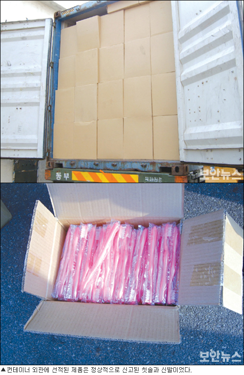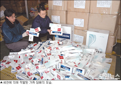 ¸»º¸·Î ´ã¹è µî(ÃÑ 2,693,500°©)À¸·Î À§ÀåÇÑ °¡Â¥ ´ã¹è´Â ÁøÇ°½Ã°¡ 59¾ï¿ø »ó´çÀÇ Á¦Ç°À̾ú´Ù. À̵éÀº °¡Â¥ ´ã¹è¸¦ Ä©¼Ö°ú ½Å¹ß µîÀ¸·Î ǰ¸íÀ» À§ÀåÇÏ´Â Ä¡¹ÐÇÔÀ» º¸¿´´Ù. ÄÁÅ×ÀÌ³Ê ¹® ¾ÈÂÊ¿¡´Â Á¤»ó½Å°í ¹°Ç°ÀÎ ½Å¹ß°ú Ä©¼ÖÀ» ÀûÀçÇϰí, ±× ¾ÈÂÊ¿¡´Â °¡Â¥ ´ã¹è µîÀ» Àº´ÐÇÏ´Â °íÀüÀûÀÎ ¹æ¹ýÀ» »ç¿ëÇÑ ÇÇÀÇÀÚµéÀº ´ÙÇàÈ÷µµ ¼¼°üÀÇ Á¤¹Ð ȹ°°Ë»ç¿¡ ÀÇÇØ ¹üÁËÇàÀ§ ÀÏü°¡ Àû¹ßµÉ ¼ö ÀÖ¾ú´Ù.