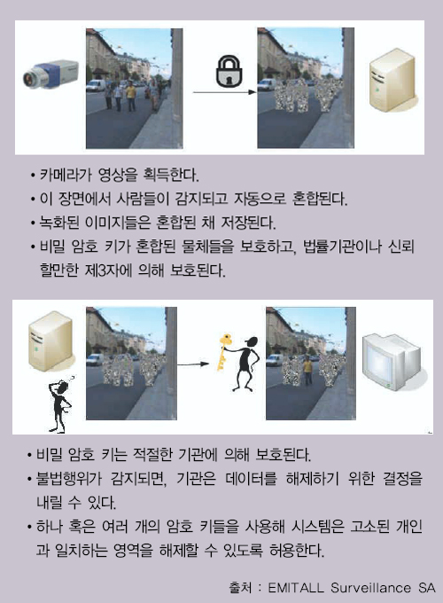 ÀÏ·Ê·Î, IP ³×Æ®¿öÅ© ±â¹ÝÀÇ Áö´ÉÇü ¿µ»ó°¨½Ã ½Ã½ºÅÛÀº ½ºÀ§½º¿¡ À§Ä¡ÇÑ Áö´ÉÇü ¿µ»ó°¨½Ã ¾÷ü¿¡ ÀÇÇØ °³¹ßµÆ´Ù. ±× ½Ã½ºÅÛ¿¡¼ ÁÖ¸ñÇÒ ¸¸ÇÑ Æ¯Â¡Àº °¨½Ã ÇÏ¿¡ ÀÖ´Â »ç¶÷µéÀÇ ºñ¹ÐÀ» º¸È£Çϱâ À§ÇÑ »ç»ýȰº¸È£ ±â´ÉÀ» µµÀÔÇÑ °ÍÀ̾ú´Ù. ´õ ÀÚ¼¼È÷ ¸»Çϸé, ¾î¶² ¿µ»óºÐ¼® ¸ðµâÀº »ç¶÷À̳ª ÀÚµ¿Â÷ÀÇ ¹øÈ£ÆÇ °°Àº »ç»ýȰ°ú ¹ÐÁ¢ÇÑ Á¤º¸°¡ ³ªÅ¸³ª´Â Àå¸éÀ» È®ÀÎÇϰí, ÀÌ¿Í °ü°èµÈ ±¸¿ª¿¡ È¥ÇÕÈ ±â¼úÀÌ Ã¤¿ëµÈ´Ù.