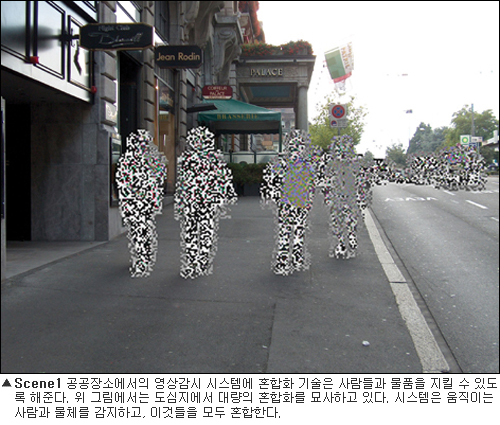 ÀÌ·¯ÇÑ ¼ÒÇÁÆ®¿þ¾î ¼Ö·ç¼ÇÀº °ø°øÀÇ ¸ñÀûÀ» À§ÇØ ¼³Ä¡µÇ´Â CCTV ½Ã½ºÅÛÀ» À§ÇØ Æ¯º°È÷ ¼³°èµÇ°í ¹ßÀüµÇ¾î ¿ÔÀ¸¸ç ±âÁ¸ ȤÀº »õ·Î¿î °¨½Ã¼³ºñ¿¡ Ȱ¿ëÇÒ ¼ö ÀÖ´Ù. °ø°ø ¿µ»ó °¨½Ã±â´É¿¡ Àû¿ëµÈ È¥ÇÕÈ ±â´ÉÀº »ç¶÷µé°ú Àç»ê¿¡ ´ëÇÑ »ç»ýȰÀ» Áö۵µ·Ï ÇØÁØ´Ù. Scene 1¿¡¼´Â µµ½ÉÁö¿¡¼ È¥ÇÕÈµÈ ¿µ»óÀ» ¼³¸íÇϰí ÀÖ´Ù. ½Ã½ºÅÛÀº ¿òÁ÷ÀÌ´Â »ç¶÷°ú ¹°Ã¼¸¦ °¨ÁöÇϰí, À̸¦ ¸ðµÎ È¥ÇÕÇÑ´Ù.