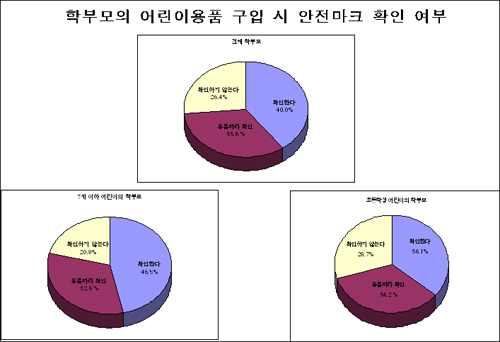 ƯÈ÷ 7¼¼ ÀÌÇÏÀÇ Àڳฦ µÐ ÇкθðµéÀº ¾ÈÀü¸¶Å© È®ÀÎÀǽÄÀÌ ³ô¾Æ 10¸í °¡¿îµ¥ 8¸íÀÌ ¾î¸°ÀÌ¿ëǰÀ» ±¸ÀÔÇÒ ¶§ ¾ÈÀü¸¶Å©¸¦ È®ÀÎÇÏ´Â °ÍÀ¸·Î Á¶»çµÆ´Ù. ÃʵîÇлýÀ» ÀÚ³à·Î µÐ ÇкθðµéÀÇ °æ¿ì¿¡´Â 10¸í Áß 7¸íÀÌ ¾ÈÀü¸¶Å©¸¦ º¸°í ¹°°ÇÀ» ±¸ÀÔÇÑ´Ù°í ´äÇß´Ù.